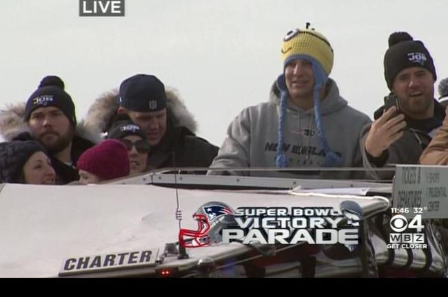 New England Patriots superstar tight end Rob Gronkowski wore a Minion hat, a nod to characters to from the“Despicable Me’’ film series, during the team’s Duck Boat victory parade in Boston on Wednesday.