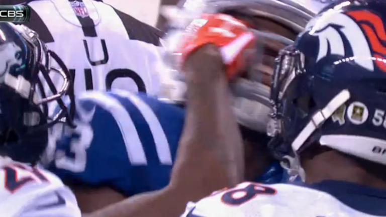 The second infraction came when linebacker Danny Trevathan was whistled for holding on a chip-shot field goal with 28 seconds left, giving Indy a first down and allowing the Colts to run out the clock. At that point, Talib tauntingly clapped at an official, drawing an unsportsmanlike conduct penalty.