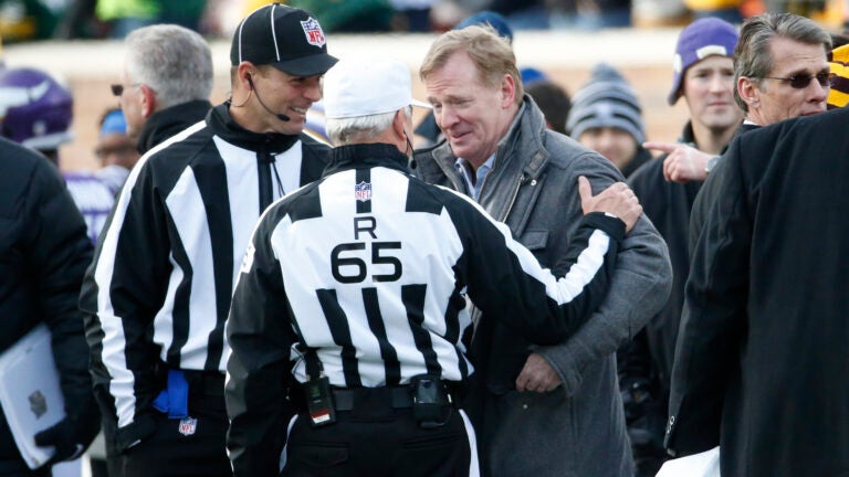 Roger Goodell says NFL refs ‘do an extraordinary job’: “I think our officials do an extraordinary job,’’ Goodell said. “I think what we see now through technology is we see things we could never see before. But I think what it does is it validates the quality of our officiating. We all recognize that officials are going to make mistakes. What we need to do is try to avoid those mistakes as much as possible, train them differently and improve the quality of the officiating and use technology to help them when a mistake does occur.’’ (Boston.com)