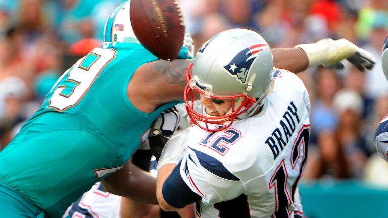 Tom Brady threw the ball five times in the first half, the fewest of his career, in the Patriots’ 20-10 loss to the Dolphins.