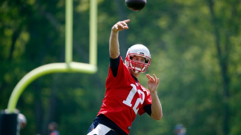 Brady took some snaps at the Patriots’ OTA practice Thursday afternoon and threw a few passes to some Patriots receivers, including the newly acquired Martellus Bennett.