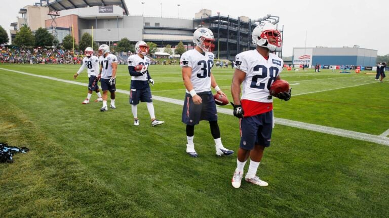 White, who is not known as a between-the-tackles runner, looked elusive during a interior 7-on-7 drills, which match up a quarterback, running back, and five offensive linemen against the front-seven of the defense. Gaffney helped Brady and Jimmy Garoppolo warm up by catching passes early in practice.