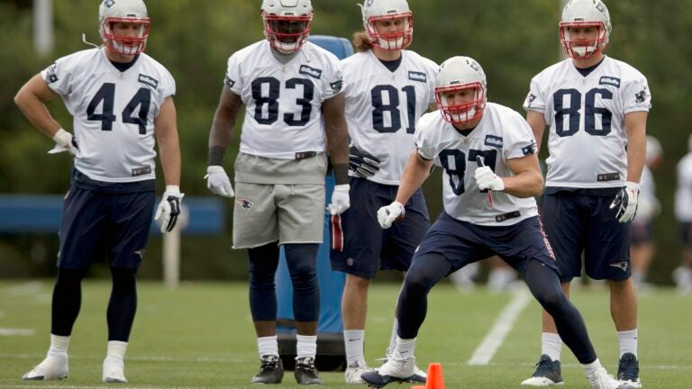 The Patriots’ tight ends seems to make a spectacular play per day in practice.
