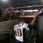 Patriots running back LeGarrette Blount overwhelmed six Cardinals on his way into the end zone to finish New England’s opening drive of the second half on Sunday night in Arizona. The powerful scoring run gave the Patriots a 17-7 lead in the third quarter.
