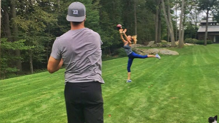 Tom Brady may be the most recognizable face in all of Boston sports, but that didn’t stop him from kicking back Sunday and watching plenty of football just like the rest of us.