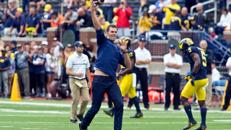 On Saturday afternoon, 16 years after the Patriots drafted Tom Brady out of the University of Michigan, Tom Brady stepped back onto the field at the Big House and stepped in as his alma mater’s honorary captain.