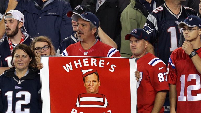 What a joke. Are we really supposed to believe that the NFL boss can’t sit in the back of a tinted-window limo that will take him straight into the underbelly of Gillette Stadium Sunday night?