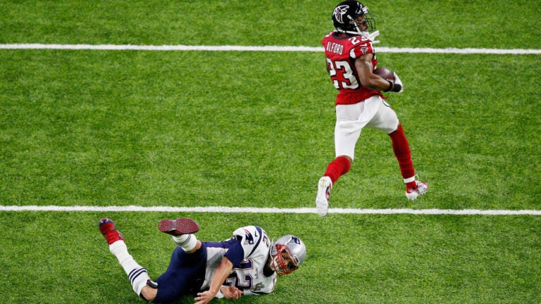 After throwing an interception during the second quarter of Super Bowl LI, Tom Brady refused to give up. Running as fast as he could, the Patriots’ quarterback went full extension to try and make a tackle. His dive missed its mark, and Robert Alford ran the ball back for a Falcons touchdown.