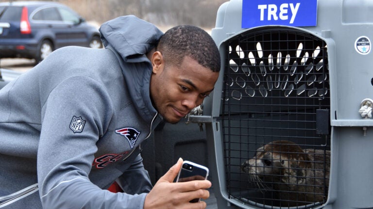 New England Patriot Trey Flowers was in Rhode Island Tuesday morning to cheer on his namesake, a 9-month-old harbor seal, as she raced home into the ocean.