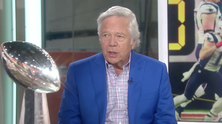 Patriots owner Robert Kraft addressed the media from the NFL owners meetings Monday, while the Celtics moved into first place on a night off due to a Cleveland loss.