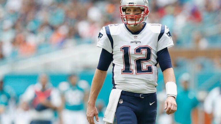 Tom Brady took a sack as the clock wound down against Miami.