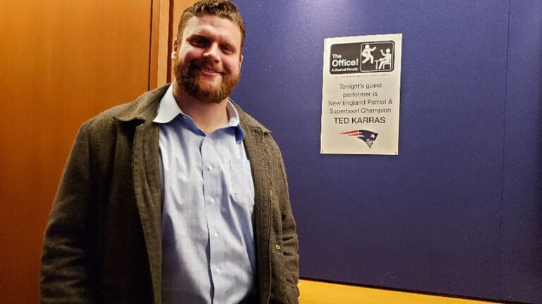 FOXBOROUGH — Ted Karras has played in Super Bowls, but stepping onto a small stage in the South End on Tuesday, he still had major butterflies.