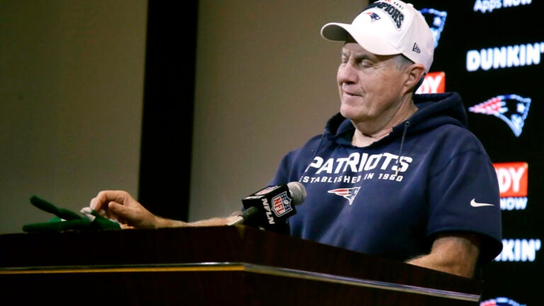 Watch Bill Belichick’s reaction to Lawrence Guy planting elves around his press podium