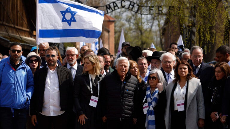 FOXBOROUGH, Mass. (AP) — New England Patriots owner Robert Kraft led a delegation that included rapper Meek Mill on a march in Poland on Tuesday to honor victims and survivors of the Holocaust.