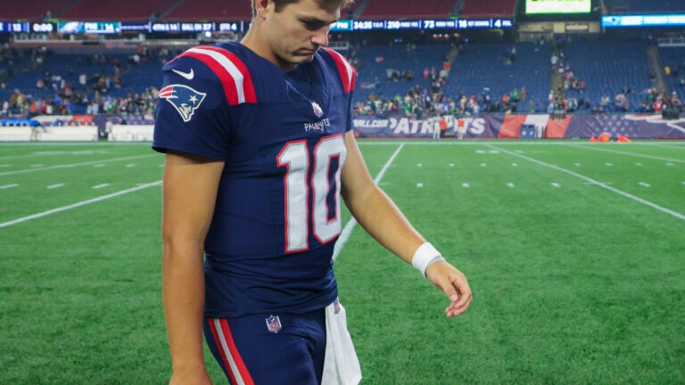 The No. 3 overall draft pick out of North Carolina appeared in just one series in the Patriots’ preseason opener, but played the second and third quarters of this one. He finished 6 of 11 for 47 yards.