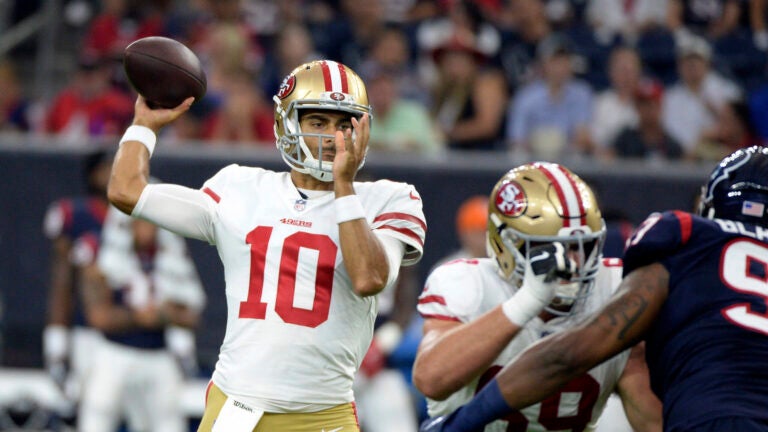 Quarterback Jimmy Garoppolo flashed his potential last year with the San Francisco 49ers, racking up seven touchdown passes and 1,560 yards in six games.