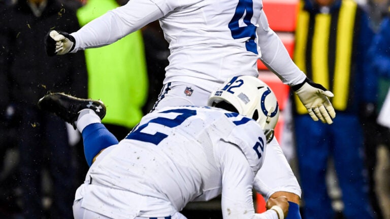 In the Raiders game 17 years ago, Vinatieri drilled game-tying and game-winning field goals with the pressure on, but Saturday he didn’t have the same success.