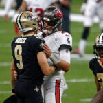 After Tampa Bay cements the win, in a conversation with the sidelined quarterback Smith, Brady says: “I’m proud of you, bro,” and calls him an inspiration.