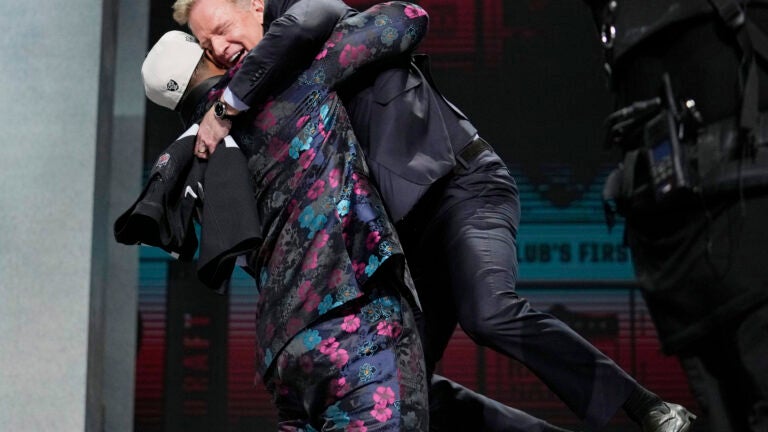 Draft prospects were aware of Goodell’s condition and mostly took it easy on him until Tennessee drafted JC Latham with the seventh pick. The 6-foot-6, 320-pound offensive tackle walked onto the stage, smacked hands with Goodell and pulled him in for a bear hug, lifting him several inches off the ground.