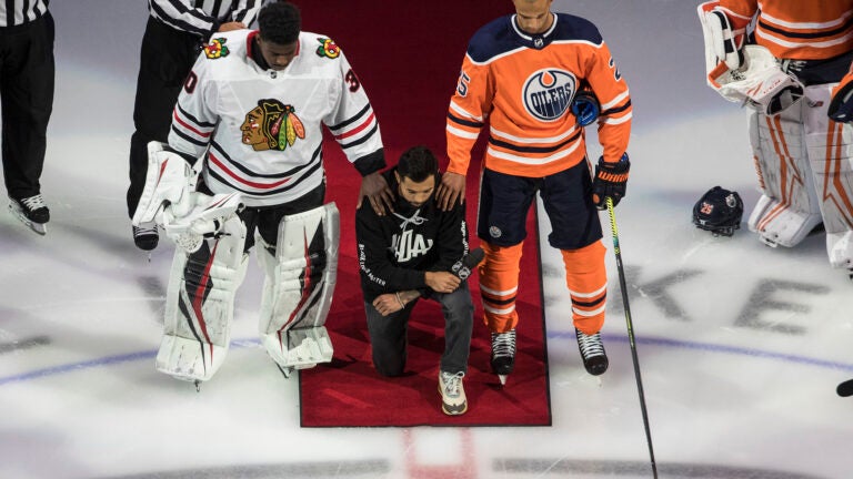 Dumba knelt at center ice while fellow Black players Malcolm Subban of Chicago and Darnell Nurse of Edmonton each stood with a hand on one of his shoulders. Several teams this week stood together during the U.S. and Canadian anthems, with some players locking arms to show solidarity.