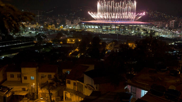 RIO DE JANEIRO (AP) — In the hills that hug Maracana Stadium, many Brazilians saw the flash and glitz of the opening ceremony for the Olympics from rooftops with exposed wiring and water pipes, amid trash-filled streets separated from the spectacle by a highway and train tracks.
