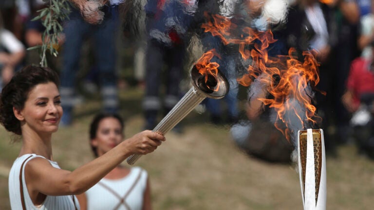 Tuesday’s first torchbearer will be Greek skier Apostolos Aggelis. He will then pass the torch to former Manchester United soccer player Park Ji-sung, a South Korean. The flame will be carried around Greece before reaching South Korea on Nov. 1.