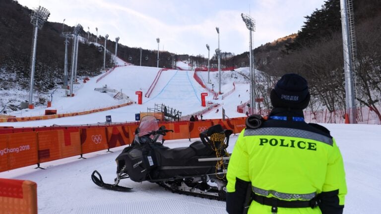 An icy wind whipped the flags at the entrance to Jeongseon as officials stood down from their preparations to hold one of the premier skiing events of the Olympics. The men’s downhill was to have been the first Alpine skiing event of these Games.