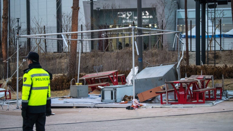 But seriously, it’s really, really windy in PyeongChang. Several events have been postponed because of the conditions, and athletes, spectators, and journalists have been instructed to take precautions when moving around outside in some areas.