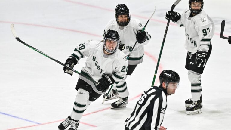 Boston’s Sophie Shirley tied it at 2 at the 5:22 mark of the third period with her second goal.