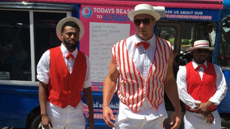 Amidst yet another sweltering summer day, a trio of Patriots players arrived in Downtown Crossing to hand out free ice cream.