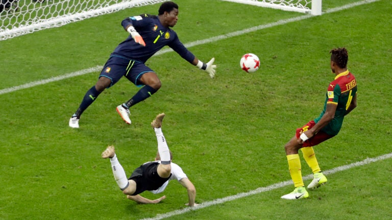 SOCHI, Russia (AP) — World champion Germany reached the Confederations Cup semifinals on Sunday with a 3-1 victory over a Cameroon side reduced to ten men after further confusion with experimental video replays.