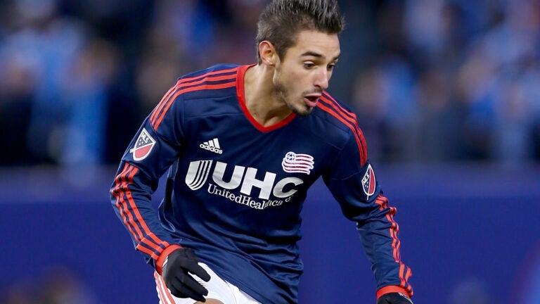 The Revs’ Cristian Penilla was sent off in the 23rd minute for kicking back at Alessandrini after getting knocked to the ground.