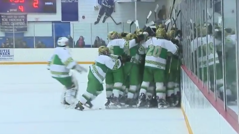 Caliendo’s Green Knights were down two goals in the third period but tied the game, forcing overtime.