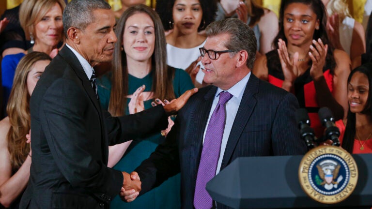Obama says he doesn’t expect the run of success for UConn to end any time soon. He calls Auriemma one of the world’s foremost experts on “tough love.”