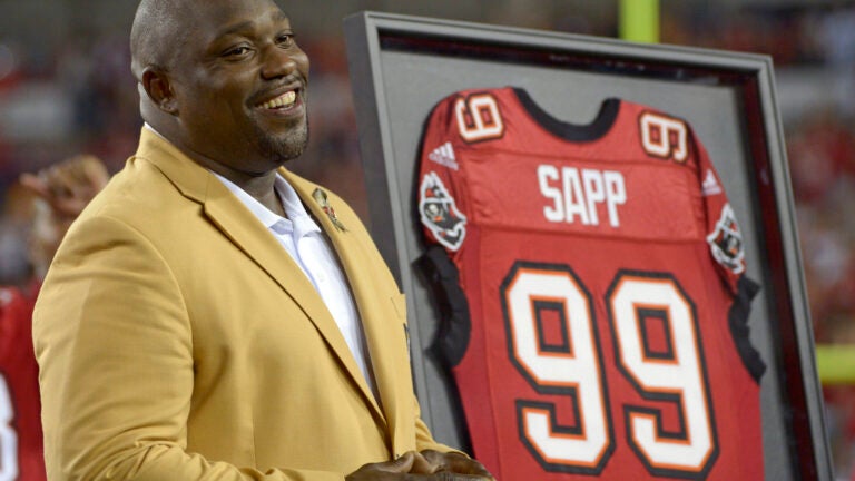 MARATHON, Fla. (AP) — Pro Football Hall of Famer Warren Sapp is OK after being bitten on the arm by a shark while catching lobster off the Florida Keys.