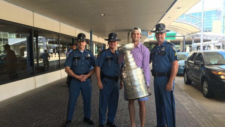 After landing at the Portland Jetport Tuesday morning, police escorted the cup and Dumoulin back to the player’s alma mater, Biddeford High School. From there, the cup was paraded to the Biddeford Ice Arena, where Dumoulin got his start playing youth ice hockey.