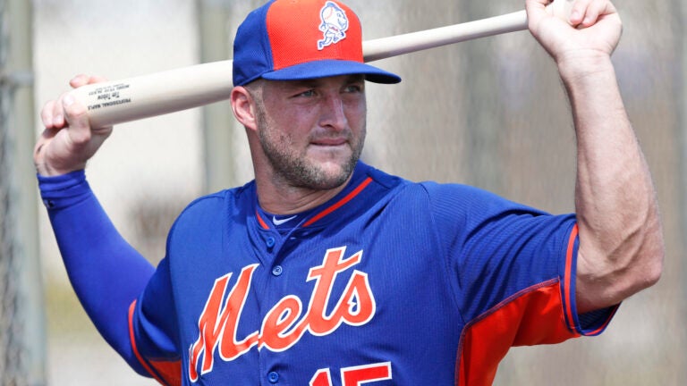 PORT ST. LUCIE, Fla. (AP) — Tim Tebow arrived at the New York Mets’ minor league clubhouse Monday morning, finding an orange-and-blue jersey with No. 15 on the back swaying in his locker.