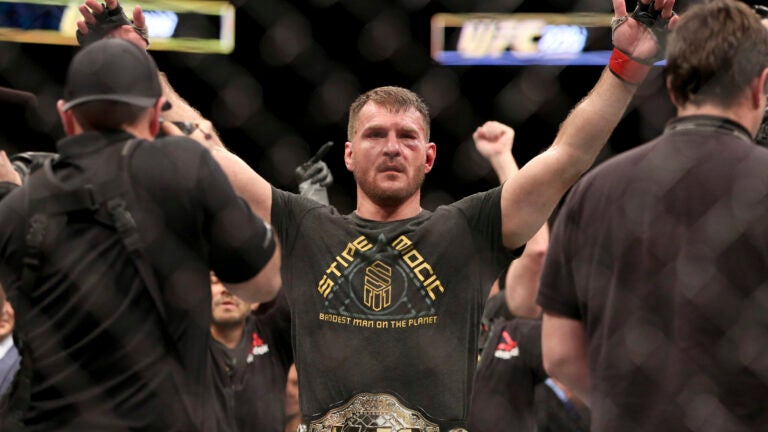 UFC grabbed hold of the Boston sports scene for a few hours Saturday night on the eve of the New England Patriots’ appearance in the AFC title game with a chance to go to the Super Bowl. The bars that surrounded the arena had UFC banners waving on a windy night. White, who lived in Boston for 10 years, is a die-hard city sports fan and attended a Celtics game this week and was set to attend the Patriots game Sunday. But for White, the main event of the week clearly took place inside the octagon, where the undisputed light heavyweight and heavyweight championships were defended on the same card for the first time since 2003.
