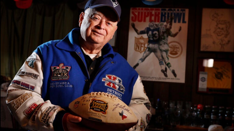 Crisman was featured in a 2010 Visa commercial along with three friends who also had attended every Super Bowl. He is attending this year’s game with a heavy heart because one of the friends, Larry Jacobson, of San Francisco, died last fall. Crisman said attending the game without Larry would be different, and he might not have gone this year if it did not carry the chance of another Patriots win.
