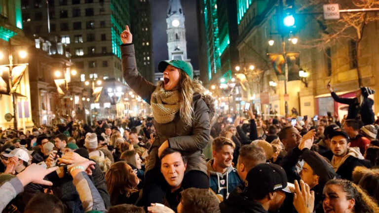 PHILADELPHIA (AP) — The rain and hail that pelted Philadelphia for much of the day dissipated just as people across the city spilled out of sports bars, apartments and houses.