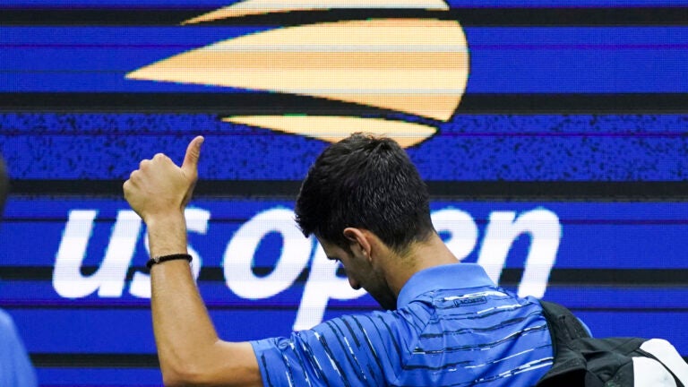 Perhaps confused by the sudden turn of events, and likely disappointed in the brevity of the show they got to watch for their expensive tickets, some spectators jeered as Djokovic walked off the court in Arthur Ashe Stadium to head toward the locker room, his two equipment bags over his other shoulder. He responded with a thumbs-up.