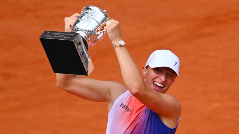 During Saturday’s postmatch ceremony, Swiatek was flanked by a pair of women who each won 18 Grand Slam singles titles, Chris Evert and Martina Navratilova. Evert said before this French Open that she thinks Swiatek could eventually surpass her women’s record of seven championships in Paris.