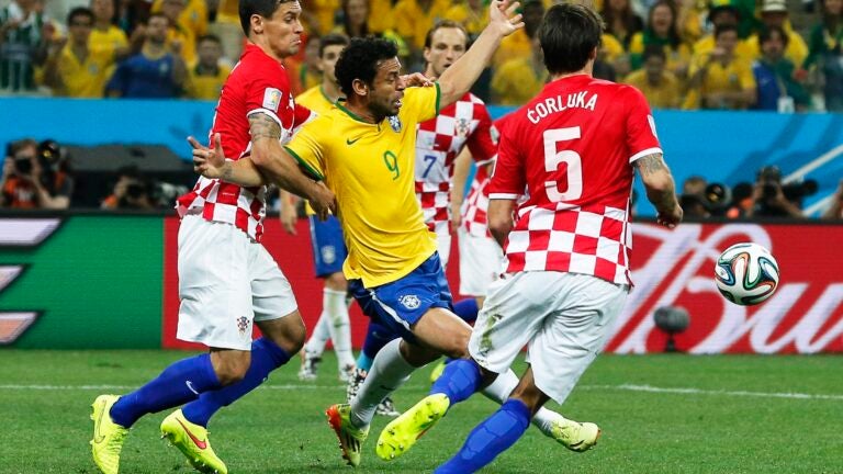 We’re one game into the 2014 FIFA World Cup, and already the biggest complaint Americans have with the sport of soccer has reared its ugly head: Are they serious with all this flopping? Brazil player Fred (that’s his name) earned a penalty kick in a tie game in the 71st minute by leaning back into Croatian defender Dejan Lovren, who wasn’t there, and throwing his arms up in the air before falling to the ground. The sell job was good enough to convince referee Yuichi Nishimura to award the host country’s team a penalty shot. And that, as they say, was that.