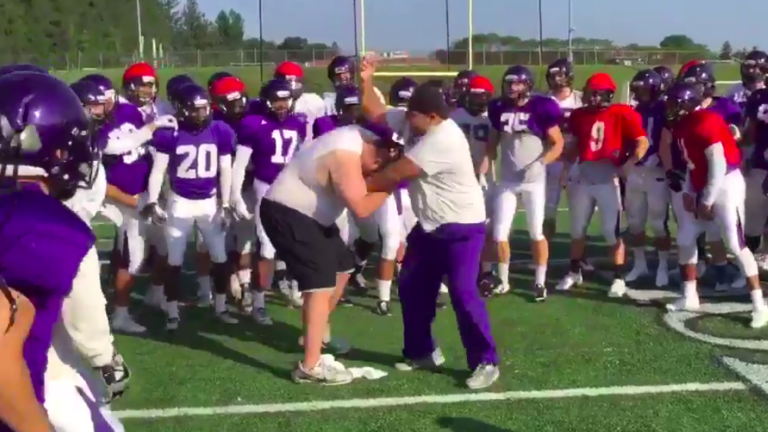 Holy Cross football coaches host WWE-esque match, pandemonium ensues