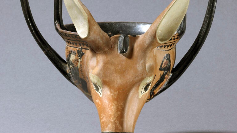 CAMBRIDGE, Mass. (AP) — Centuries before Julius Caesar sipped from a chalice and Alexander the Great raised a goblet to toast his troops, the ancients drank from festive cups made in the image of the beings they revered the most: animals.
