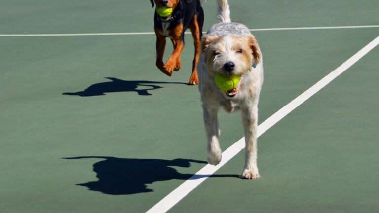 The “Serve, Fetch, Love’’ package at the Topnotch in Stowe makes the tennis courts available for dogs to chase a ball around, and when they’re worn out sends a therapist to give them in-room reiki massages.