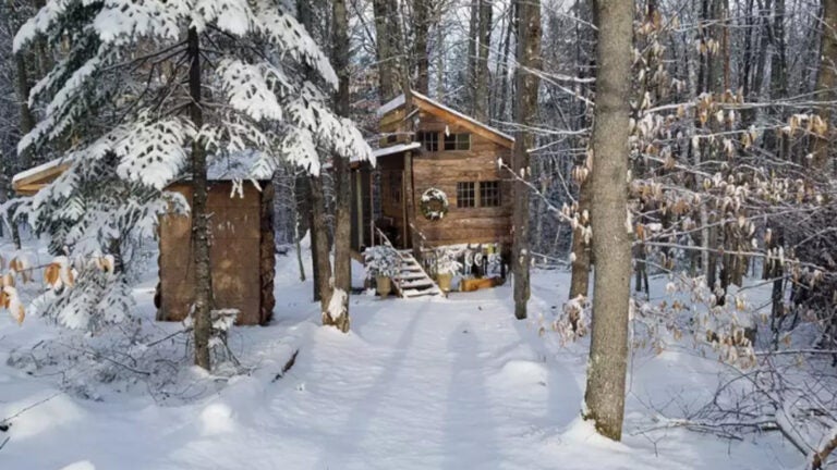 You can unplug and unwind at this tiny treehouse in the Conway, New Hampshire woods. The space, insulated and heated by propane, warms up quickly on cold days, according to the host. If you’re feeling adventurous, you can don snowshoes and explore the five miles of trails nearby.