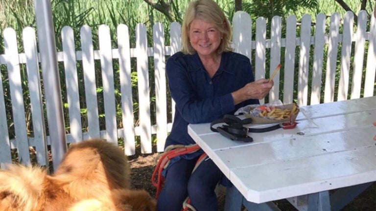 Stewart is no stranger to Maine lobster rolls. Last month, Stewart visited Bob’s Clam Hut in Kittery with her dogs and enjoyed a lobster roll outside.