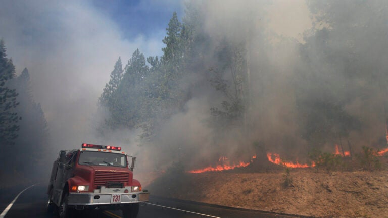 The blaze broke out Friday night in Mariposa County, near the west end of Yosemite National Park and Sierra National Forest. Fire officials said it had burned about 150 acres (61 hectares).
