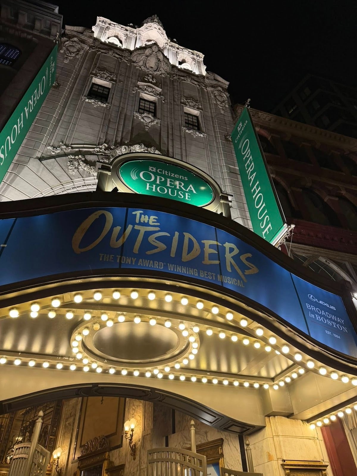 I’ll leave you with this photo of Boston’s beautiful Citizens Opera House that I took last week while there for a performance of “The Outsiders” (excellent show, I highly recommend).
